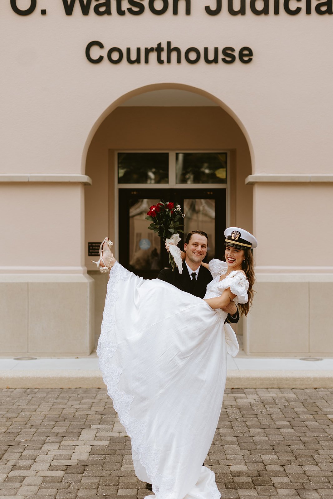 For couples drawn to something simple, meaningful, and effortlessly timeless, the St. Johns County Courthouse is a beautiful choice. Its grand columns and historic architecture bring a quiet sense of significance to your ceremony, creating an elegant, no-frills backdrop that photographs beautifully.